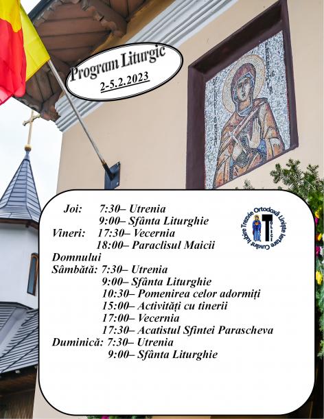 PROGRAM LITURGIC SĂPTĂMÂNA SFINTELOR PĂTIMIRI